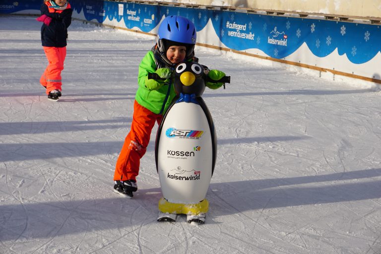 Spaß am Eislaufplatz mit und ohne Pinguin