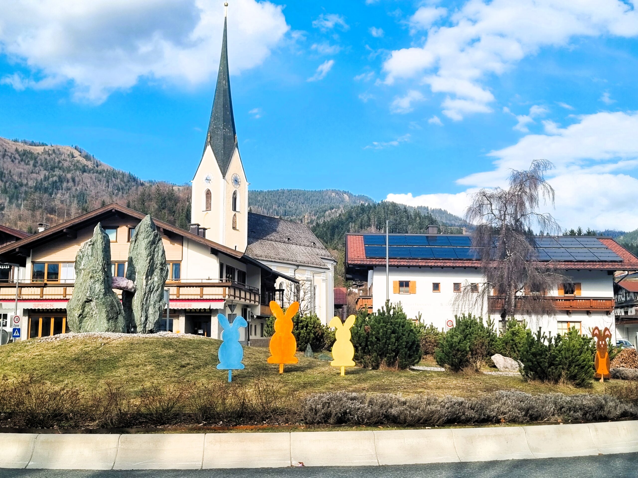 Seit Mitte März 2026 hoppelt es zu Ostern gewaltig in Kössen! Wer aufmerksam durch unser Dorf spaziert, kommt an ihnen nicht vorbei: Über 20 farbenfrohe Osterhasen-Silhouetten prägen in der Osterzeit das Ortsbild und verbreiten Frühlingsstimmung pur. Doch diese Hasen sind weit mehr als nur Dekoration – sie sind das Ergebnis eines echten Gemeinschaftsprojekts.