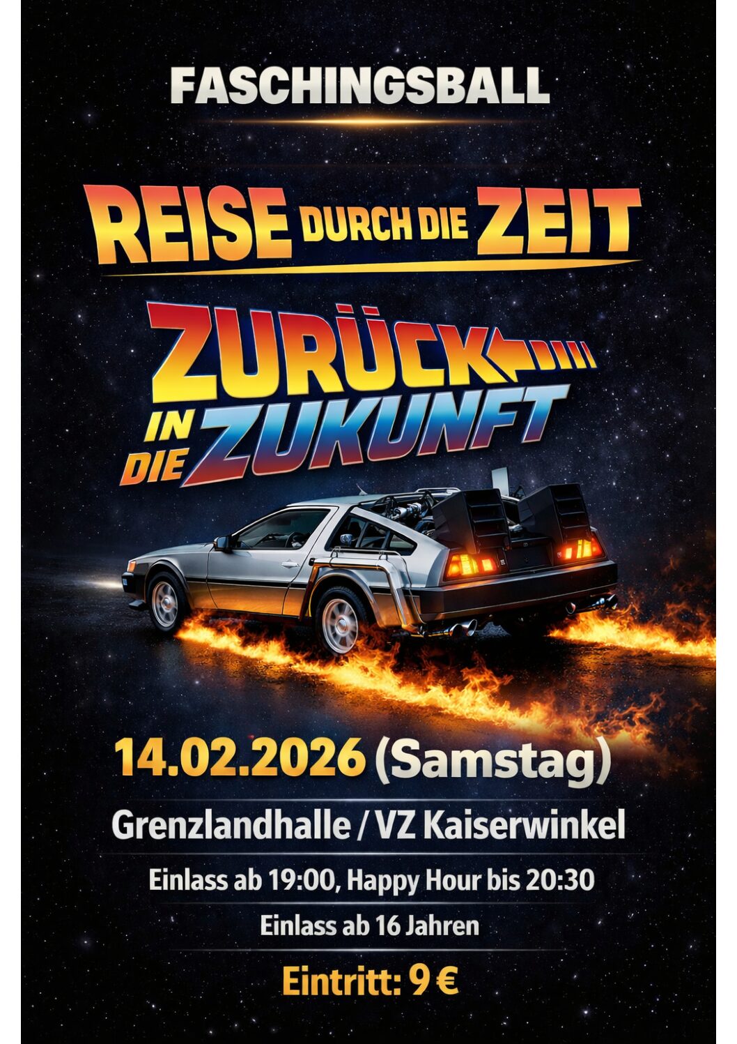 Begebt euch auf eine Reise durch die Zeit am Samstag, den 14. 02.2026 am Faschingsball in Kössen.